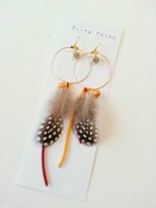 pi-na color 投稿日: 2018年7月2日2018年8月30日 投稿者: sorairo 愛知牧場さんから提供された本物の羽を使ったアクセサリーが印象的なpi-na colorさん。 ご自身がモデル出身でセンスの良いピアスやイヤリングが印象的。 素敵なアクセサリーばかりです。