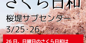 3/26 日曜日のさくら日和は天候不良のため、中止となりまし …